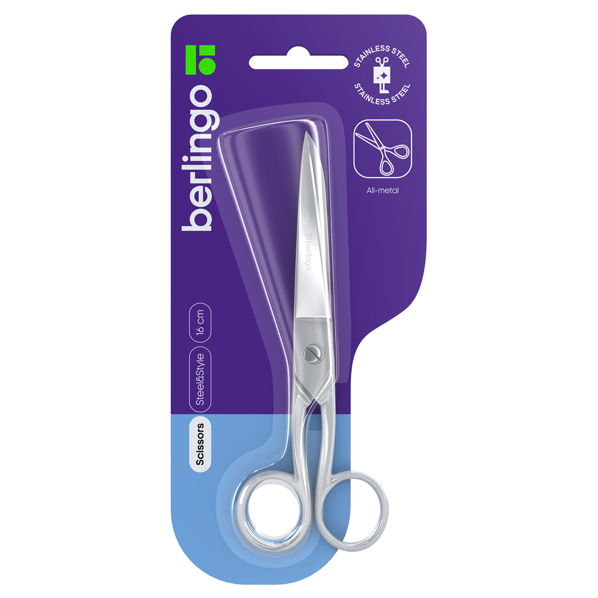 Ножницы цельнометаллические, полностью из качественной нержавеющей стали, что обеспечивает повышенную надёжность. Упаковка - удобный для транспортировки и продажи блистер с европодвесом, позволяющий оценить характеристики и удобство ножниц, не нарушая упаковку Купите товар «Ножницы цельнометаллические Berlingo Steel Style , 16см, европодвес (DNn_16007)» по оптовой цене с доставкой или самовывозом.