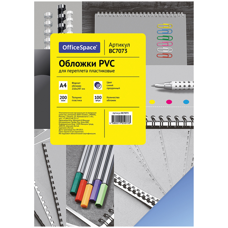 Обложка А4 OfficeSpace PVC 250мкм, прозрачный бесцветный пластик, 100л. (BC7067)описаниеОбложка для переплета предназначена для оформления документов. Выполнена из прозрачного бесцветного пластика с глянцевой фактурой. Идеально подходит как для переплета на пластиковую, так и на металлическую пружины. Сумма заказа всех товаров с этого склада должна быть не менее 3000 р. Доставка от 4 дней