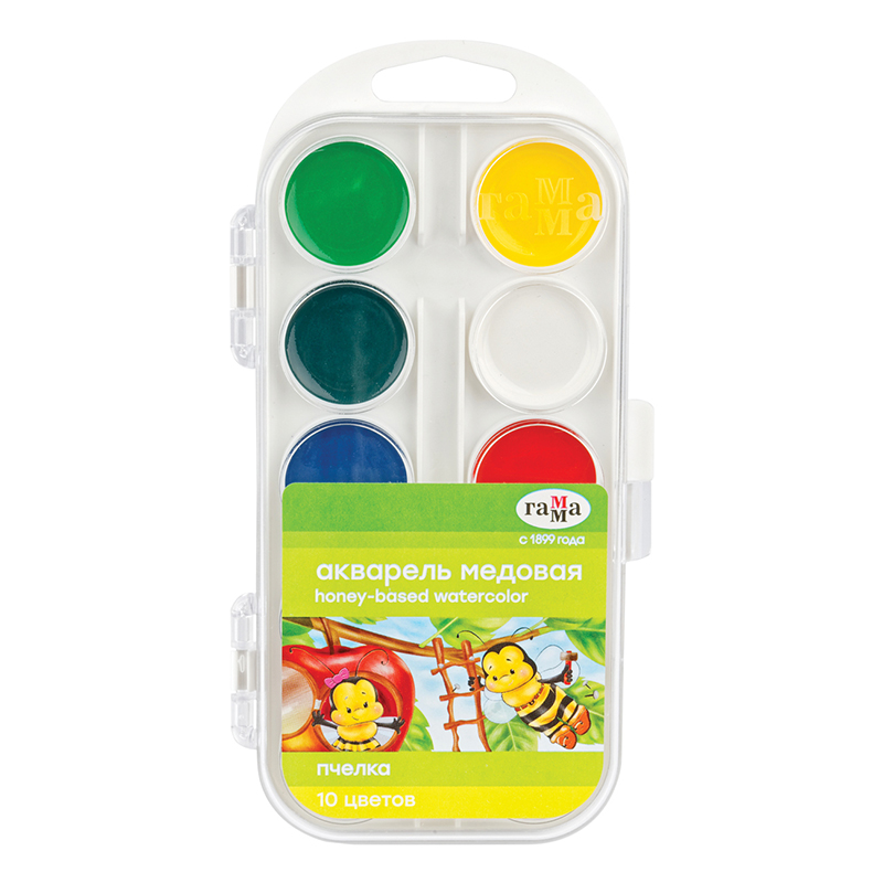 Акварель Гамма Пчелка NEW , медовая, 10 цветов, без кисти, пластик. упак., европодвес (212038)