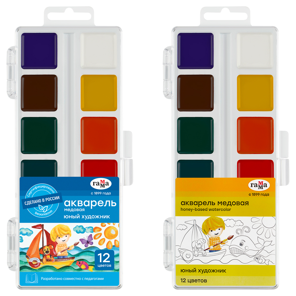 Акварель Гамма Юный художник , медовая, 12 цветов, без кисти, пластик. упак., европодвес (212071)