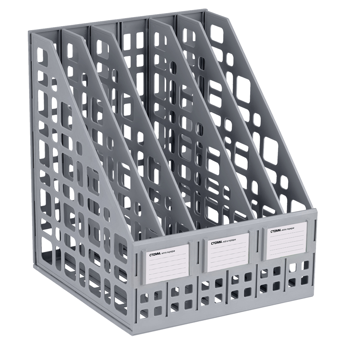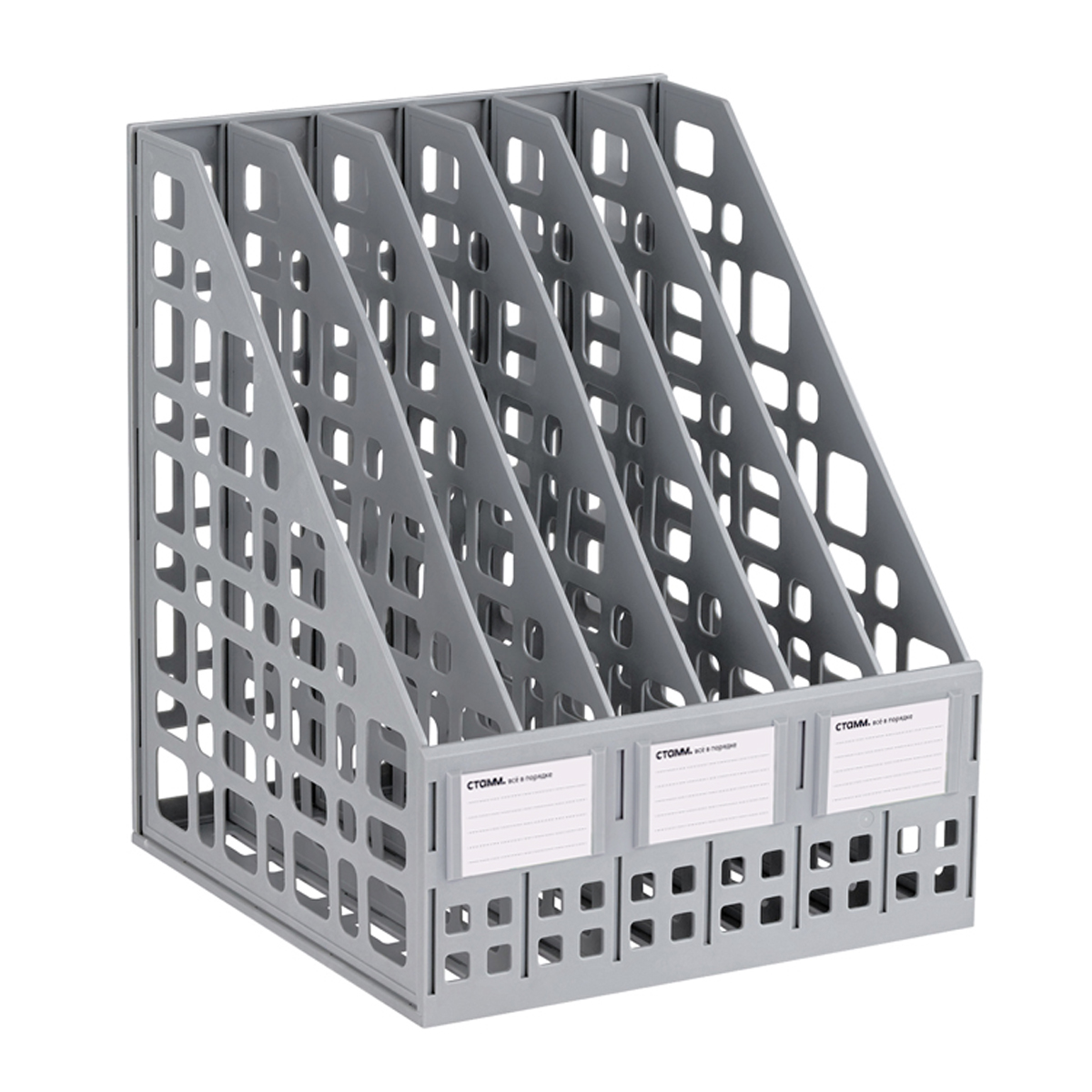 Лоток для бумаг вертикальный СТАММ, сборный, 6 отделений, серый (ЛТВ-63725/ЛТ86)описаниеЛоток сборный 6 отделений для бумаг формата А4. Современный дизайн, быстрая и легкая сборка. Удобная конструкция предусматривает регулировку ширины отделений. Изготовлен из качественного полистирола. Передняя стенка имеет окна для маркировки, предусматривающие возможность смены вкладышей. Упакован в термоусадочную пленку, поставляется в разобранном виде. Инструкция по сборке в комплекте. Цвет лотка - серый. Сумма заказа всех товаров с этого склада должна быть не менее 3000 р. Доставка от 4 дней