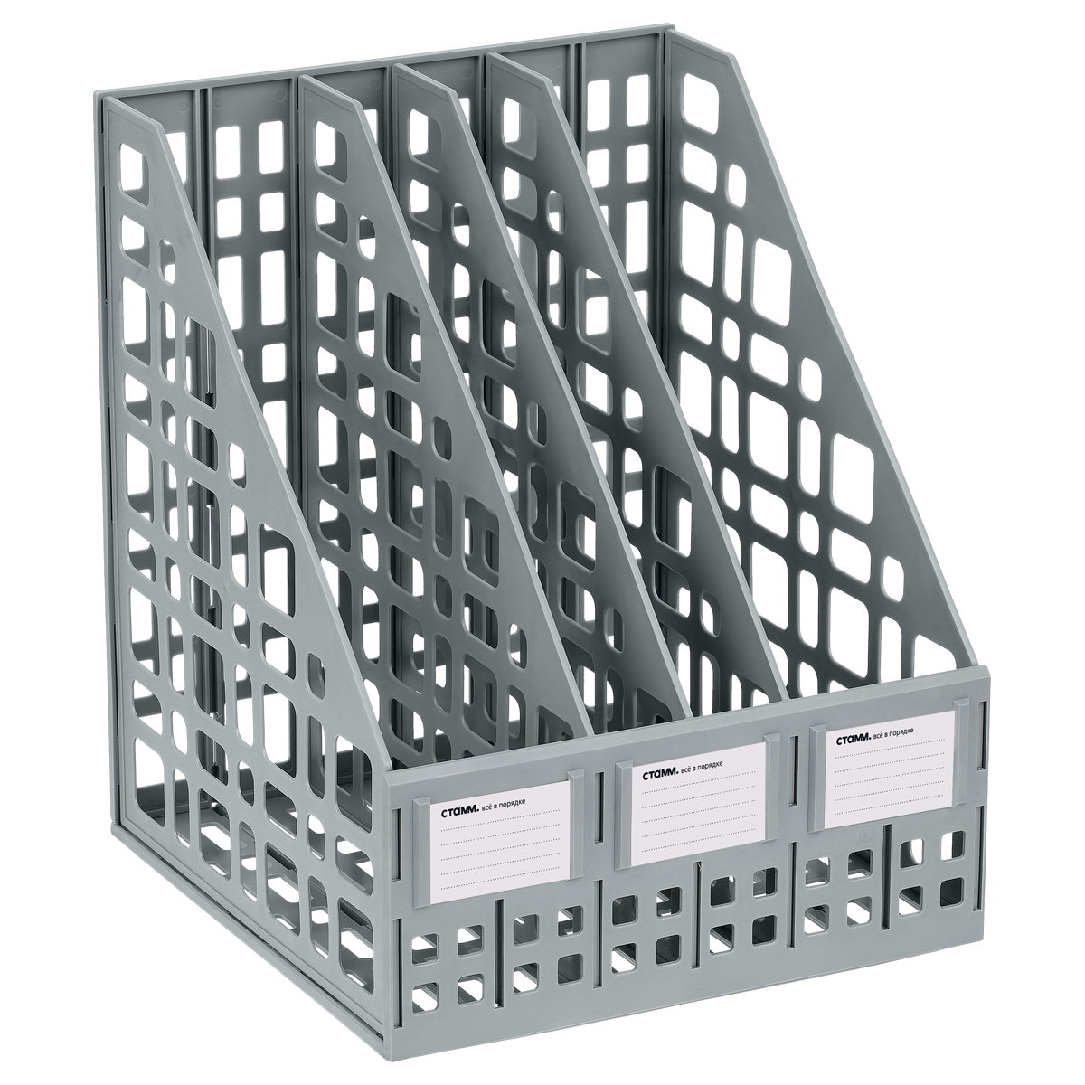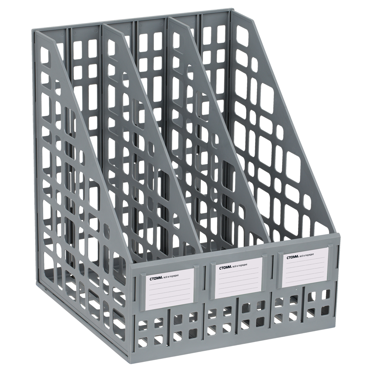 Лоток для бумаг вертикальный СТАММ, сборный, 3 отделения, серый (ЛТВ-63719/ЛТ80)описаниеЛоток сборный 3 отделения для бумаг формата А4. Современный дизайн, быстрая и легкая сборка. Удобная конструкция предусматривает регулировку ширины отделений. Изготовлен из качественного полистирола. Передняя стенка имеет окна для маркировки, предусматривающие возможность смены вкладышей. Упакован в термоусадочную пленку, поставляется в разобранном виде. Инструкция по сборке в комплекте. Цвет лотка - серый. Сумма заказа всех товаров с этого склада должна быть не менее 3000 р. Доставка от 4 дней