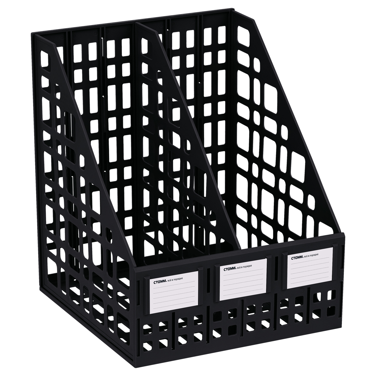 Лоток для бумаг вертикальный СТАММ, сборный, 2 отделения, черный (ЛТВ-01481/ЛТ816)описаниеЛоток сборный 2 отделения для бумаг формата А4. Современный дизайн, быстрая и легкая сборка. Удобная конструкция предусматривает регулировку ширины отделений. Изготовлен из качественного полистирола. Передняя стенка имеет окна для маркировки, предусматривающие возможность смены вкладышей. Упакован в термоусадочную пленку, поставляется в разобранном виде. Инструкция по сборке в комплекте. Цвет лотка - черный. Сумма заказа всех товаров с этого склада должна быть не менее 3000 р. Доставка от 4 дней
