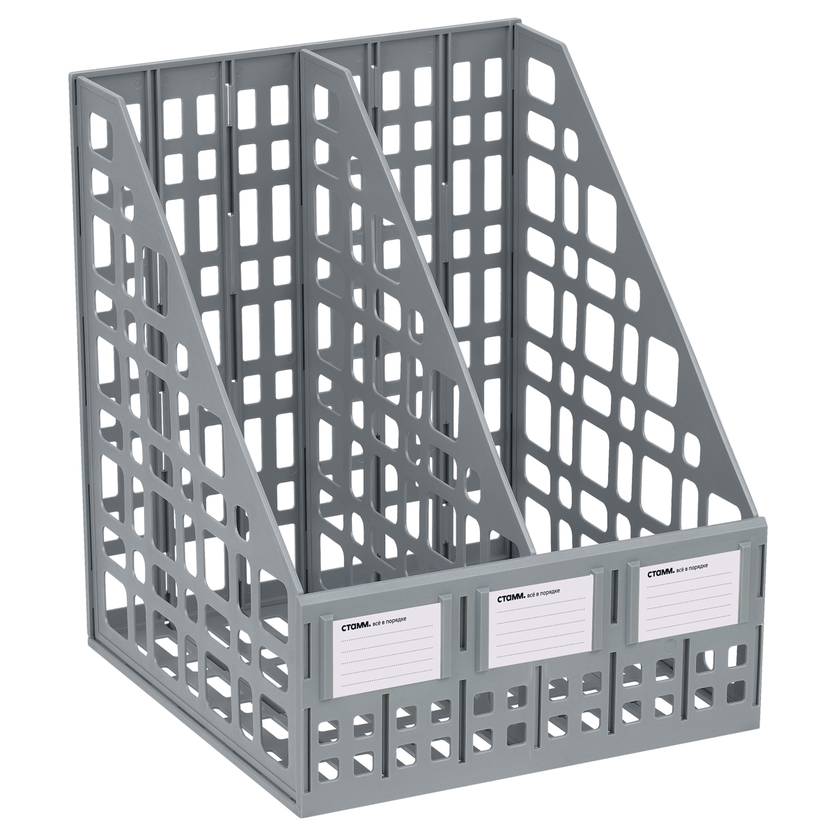 Лоток для бумаг вертикальный СТАММ, сборный, 2 отделения, серый (ЛТВ-01480/ЛТ815)описаниеЛоток сборный 2 отделения для бумаг формата А4. Современный дизайн, быстрая и легкая сборка. Удобная конструкция предусматривает регулировку ширины отделений. Изготовлен из качественного полистирола. Передняя стенка имеет окна для маркировки, предусматривающие возможность смены вкладышей. Упакован в термоусадочную пленку, поставляется в разобранном виде. Инструкция по сборке в комплекте. Цвет лотка - серый. Сумма заказа всех товаров с этого склада должна быть не менее 3000 р. Доставка от 4 дней