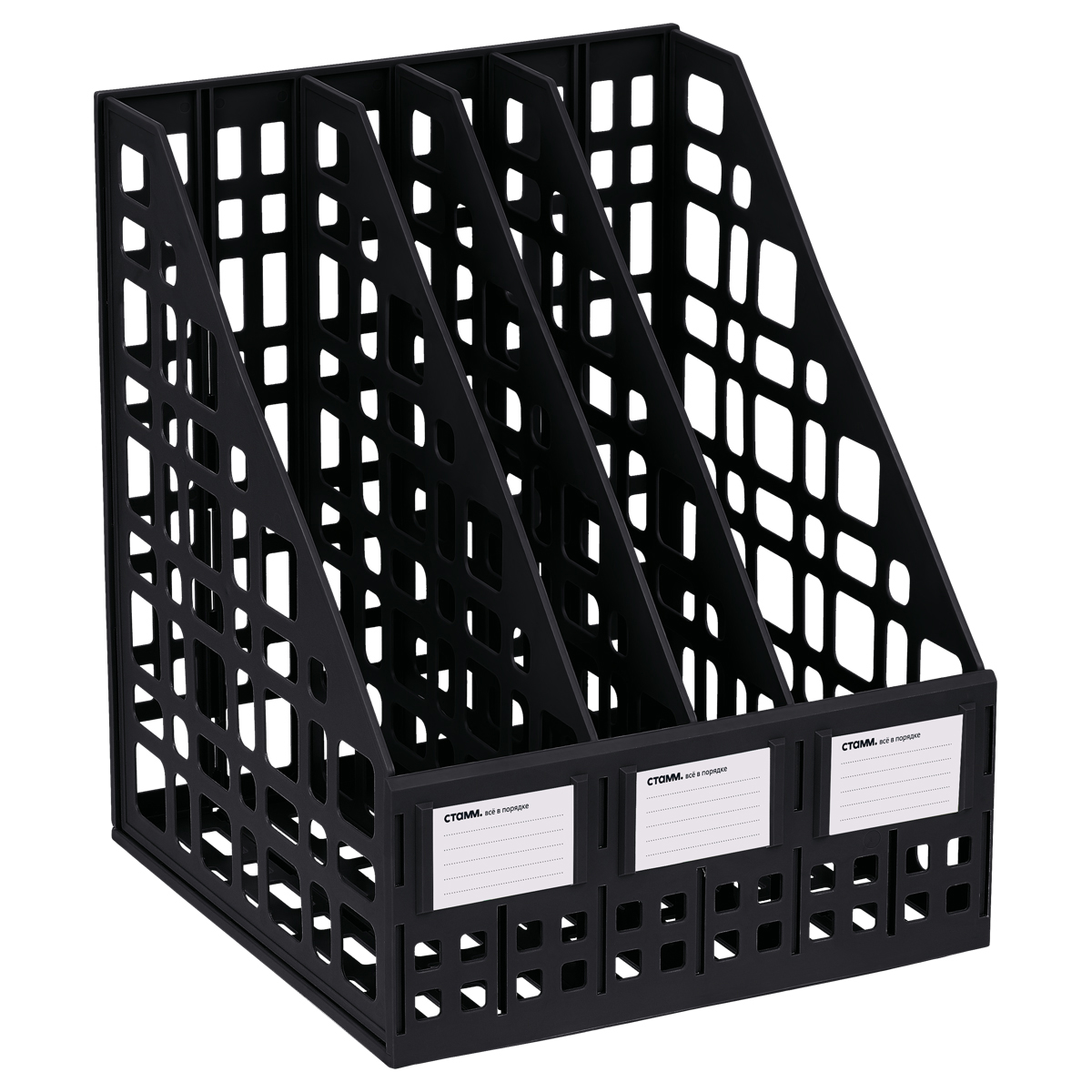 Лоток для бумаг вертикальный СТАММ, сборный, 3 отделения, черный (ЛТВ-63720/ЛТ81)описаниеЛоток сборный 3 отделения для бумаг формата А4. Современный дизайн, быстрая и легкая сборка. Удобная конструкция предусматривает регулировку ширины отделений. Изготовлен из качественного полистирола. Передняя стенка имеет окна для маркировки, предусматривающие возможность смены вкладышей. Упакован в термоусадочную пленку, поставляется в разобранном виде. Инструкция по сборке в комплекте. Цвет лотка - черный. Сумма заказа всех товаров с этого склада должна быть не менее 3000 р. Доставка от 4 дней