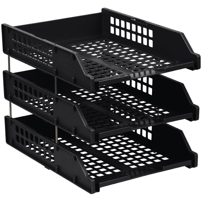 Лоток для бумаг горизонтальный СТАММ Strong , набор 3шт., на метал. стержнях, черный (ЛТГ-63795/ЛТ112)описаниеНабор из 3-х горизонтальных лотков для бумаг формата А4. Функциональная конструкция позволяет вмещать большое количество документов. Лотки надёжно фиксируются друг на друге металлическими стержнями. Конструкция предусматривает возможность установки верхнего лотка на 90 градусов. Прочный, устойчивый корпус. Изготовлен из качественного полистирола. Упакован в термоусадочную пленку, поставляется в разобранном виде. Инструкция по сборке в комплекте. Цвет лотков - черный. Сумма заказа всех товаров с этого склада должна быть не менее 3000 р. Доставка от 4 дней