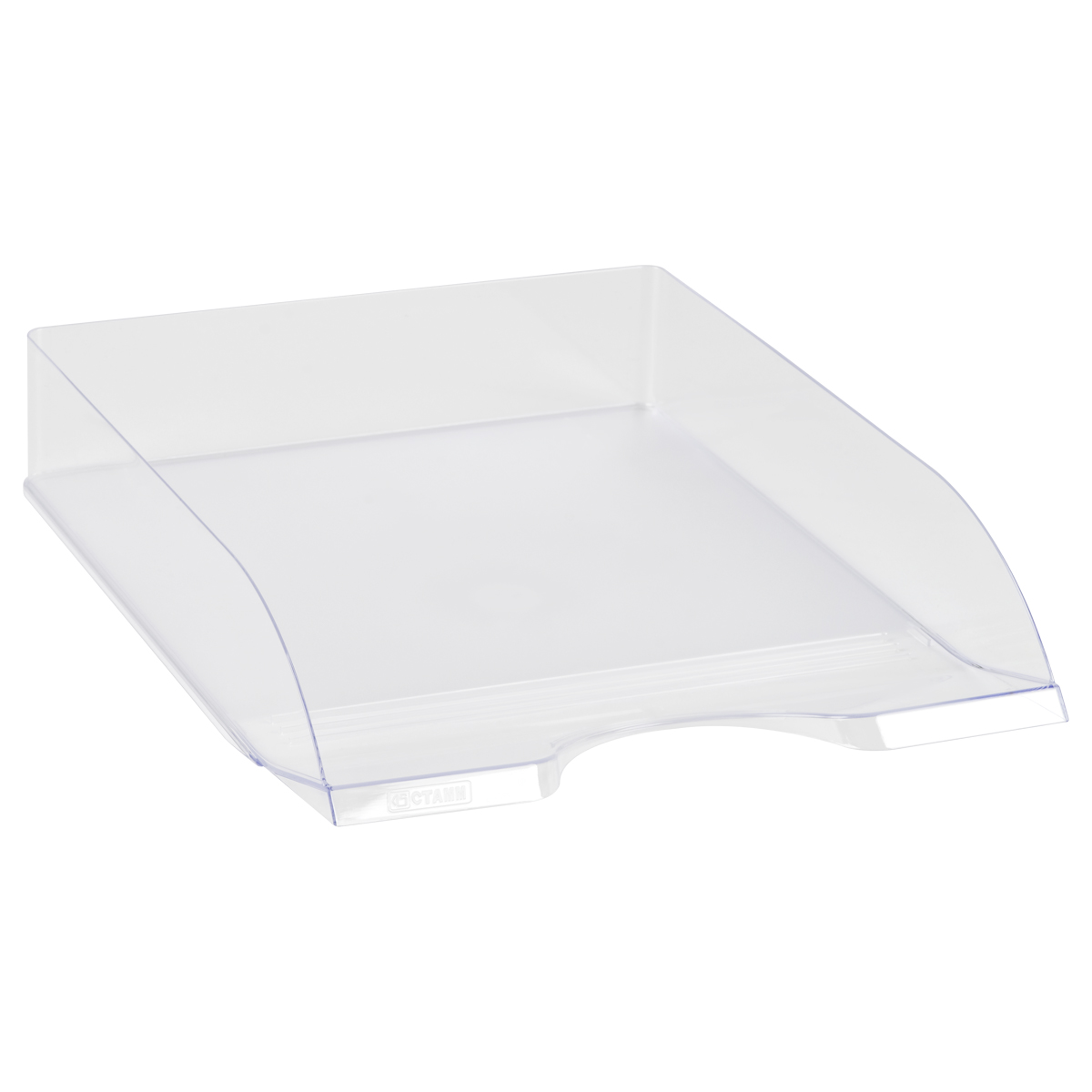 Лоток для бумаг горизонтальный СТАММ Дельта , прозрачный (ЛТГ-30463)описаниеЛоток для бумаг горизонтальный «СТАММ» серии «Дельта» подходит для хранения бумажной продукции формата А4. Лёгкий, прочный, компактный корпус. Современный дизайн, сочетание глянцевой и матовой поверхности. Габариты – 60х315х250 мм. Изделие высотой 60 мм вмещает до 300 листов. Предусмотрена возможность установки одного лотка на другой. Изготовлен из качественного полистирола. Цвет лотка – прозрачный.