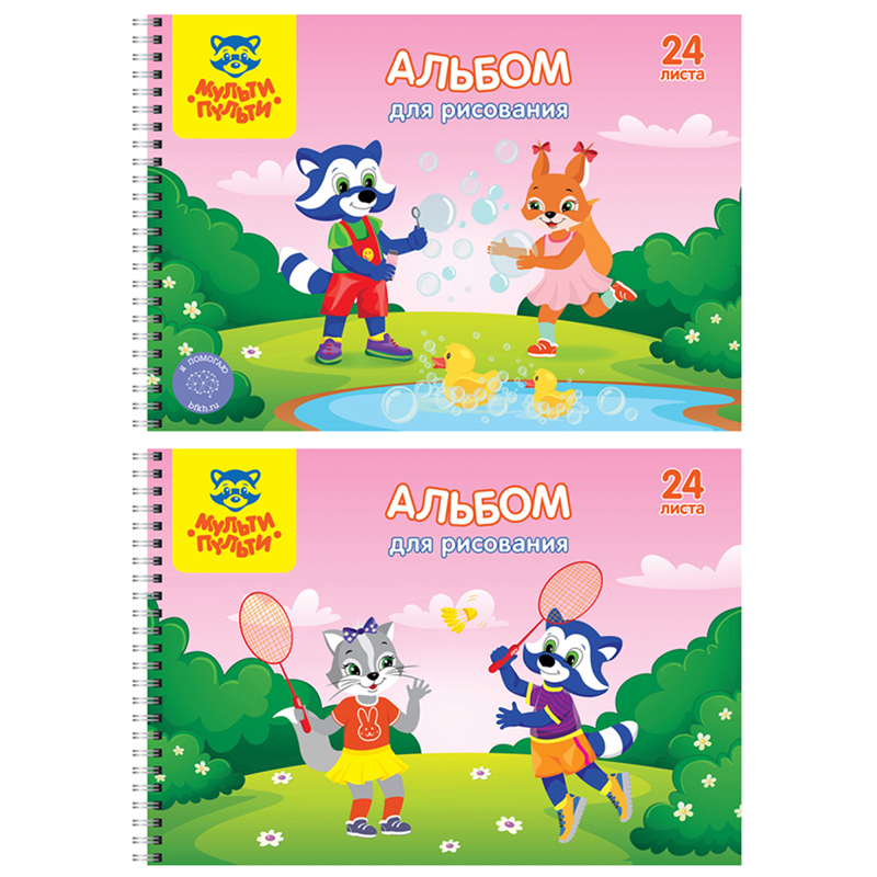Альбом для рисования формата А4, на гребне. Обложка изготовлена из импортного мелованного картона. На обороте обложки напечатаны картинки для раскрашивания. Внутренний блок из 24 листов офсетной бумаги плотностью 100 г/кв.м, соответствует Техническому регламенту «О безопасности продукции, предназначенной для детей и подростков». Подходит для рисования различными типами красок, фломастерами, цветными и чернографитными карандашами, гелевыми ручками. Без возрастных ограничений. Купите товар «Альбом для рисования 24л., А4, на гребне Мульти-Пульти Приключения Енота , с раскраской (А24сп_37225)» по оптовой цене с доставкой или самовывозом. Заказывайте, пока этот товар не раскупили! Товар производится под торговой маркой «Мульти-Пульти», что говорит о высоком качестве продукции.