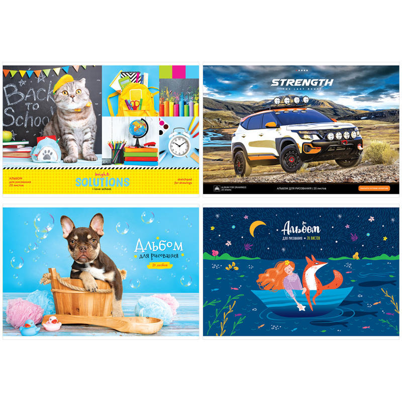 Альбом для рисования ArtSpace «Микс. Ассорти» формата А4 и размера 203*290 мм с обложкой из импортного мелованного картона состоит из 20 листов офсетной бумаги. Тип скрепления изделия – скрепка. Плотность бумаги альбома составляет 100 г/кв.м, что соответствует техническому регламенту «О безопасности продукции, предназначенной для детей и подростков». Альбом со стильным универсальным дизайном отлично подходит для рисования различными типами красок, фломастерами, цветными и чернографитными карандашами, гелевыми ручками. Без возрастных ограничений. В минимальной упаковке представлен микс дизайнов.