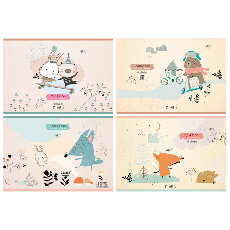 Альбом для рисования BG «Вместе веселее» поставляется с ассорти дизайнов формата А4 и размера 205*295 мм. Товар с обложкой из плотной мелованной бумаги плотностью 170 гр/м2 из 24 листов офсетной бумаги 90% белизны. Тип скрепления изделия – скрепка. Плотность бумаги альбома составляет 100 г/кв.м, что соответствует техническому регламенту «О безопасности продукции, предназначенной для детей и подростков». Альбом с универсальным дизайном отлично подходит для рисования различными типами красок, фломастерами, цветными и чернографитными карандашами, гелевыми ручками. Без возрастных ограничений.