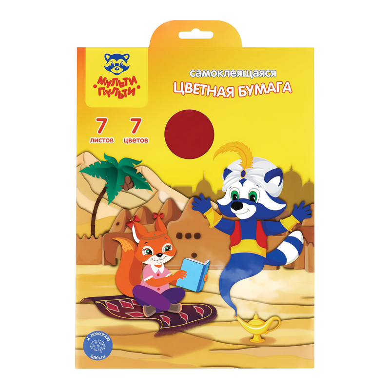Цветная бумага самоклеящаяся А4, Мульти-Пульти, 7л., 7цв., в папке с европодвесом, Приключения Енота (БС7А4_11095)описаниеНабор цветной самоклеящейся бумаги «Мульти-Пульти» серии «Приключения Енота» идеально подойдет не только для творчества, но и для украшения открыток и подарков. Бумага формата А4 имеет размер 198*285 мм. В наборе представлено 7 ярких цветов бумаги на 7 листах.