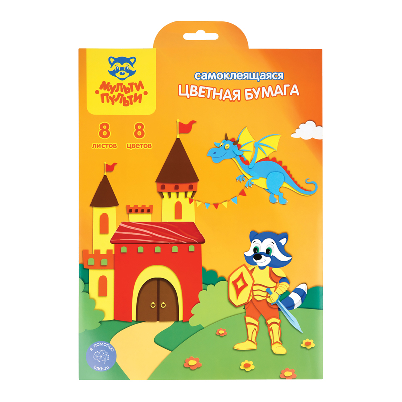 Цветная бумага самоклеящаяся А4, Мульти-Пульти, 8л., 8цв., в папке с европодвесом, Приключения Енота (БС8А4_11096)описаниеНабор цветной самоклеящейся бумаги «Мульти-Пульти» серии «Приключения Енота» идеально подойдет не только для творчества, но и для украшения открыток и подарков. Бумага формата А4 имеет размер 198*285 мм. В наборе представлено 8 ярких цветов бумаги на 8 листах.