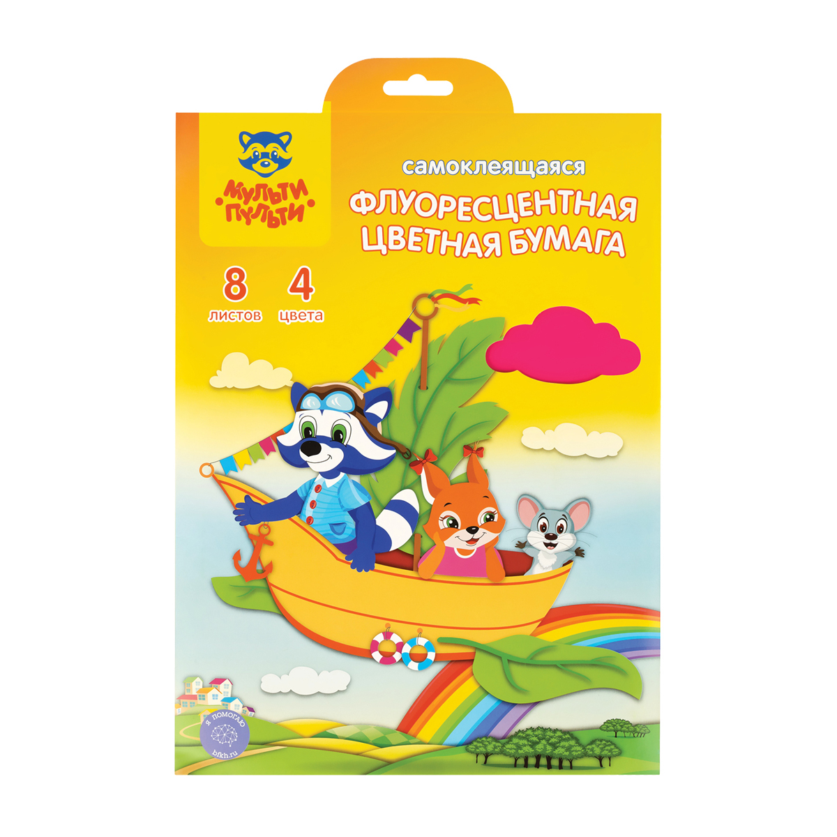 Цветная бумага флуоресцентная самоклеящаяся А4, Мульти-Пульти, 8л., 4цв., в папке, Приключение Енота (ЦБс8А4ф_16868)описаниеНабор цветной самоклеящейся бумаги «Мульти-Пульти» серии «Приключения Енота» идеально подойдет не только для творчества, но и для украшения открыток и подарков. Мелованная бумага имеет размер 200*280 мм. Плотность бумаги формата А4 – 90 г/м2. В наборе представлено 4 ярких флуоресцентных цвета бумаги на 8 листах.