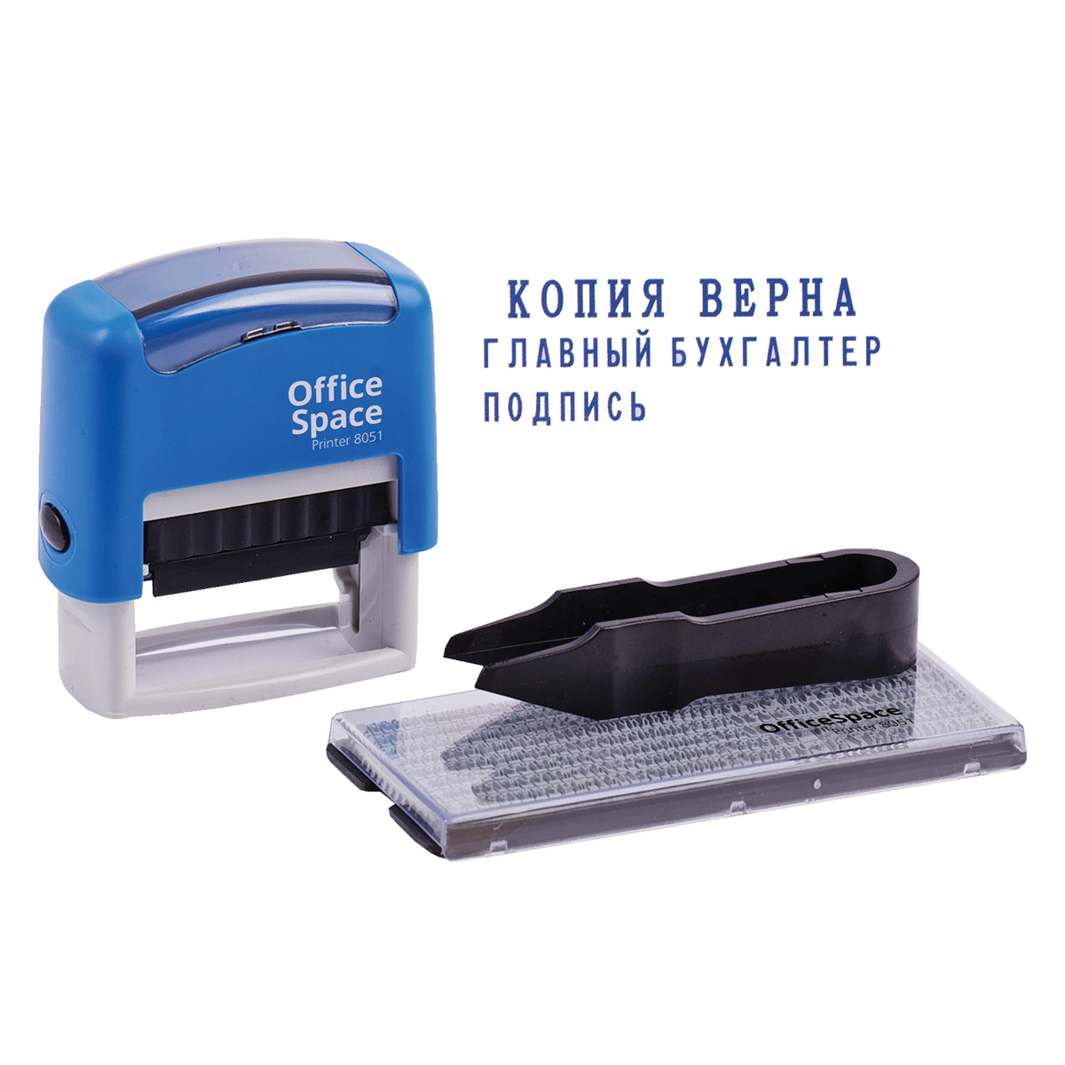Самонаборный автоматический пластиковый 3-строчный штамп OfficeSpace. Размер оттиска 38*14 мм, оснастка с рифленой пластиной. Автоматическое окрашивание. В комплекте пинцет, 1 касса букв, цифр и символов (3мм) и сменная штемпельная подушка (срок годности сменной подушки – 6 лет, дата изготовления указана на упаковке). Символы надежно закрепляются в текстовой пластине (две ножки). При замене рекомендуется заменить подушку. Используется для набора штампов с почтовыми, банковскими реквизитами и другой меняющейся информацией. Усиленные двойные стенки выкатного механизма. Резиновые подушечки. Долговечность благодаря металлической втулке. Упаковка – блистер с европодвесом.