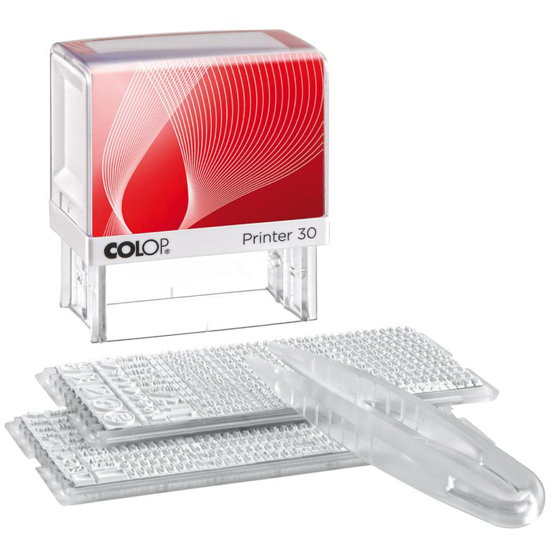 PRINTER 30 SET - пластиковый самонаборный штамп с персонализацией. Размер поля: 18х47 мм, 5 строк. В комплекте: кассы А, B, сменный вкладыш, пинцет. Купите товар «Штамп самонаборный Colop, с персонализацией 5стр., 2 кассы, пластик, 18*47мм (Printer 30-Set с перс.)» по оптовой цене с доставкой или самовывозом.