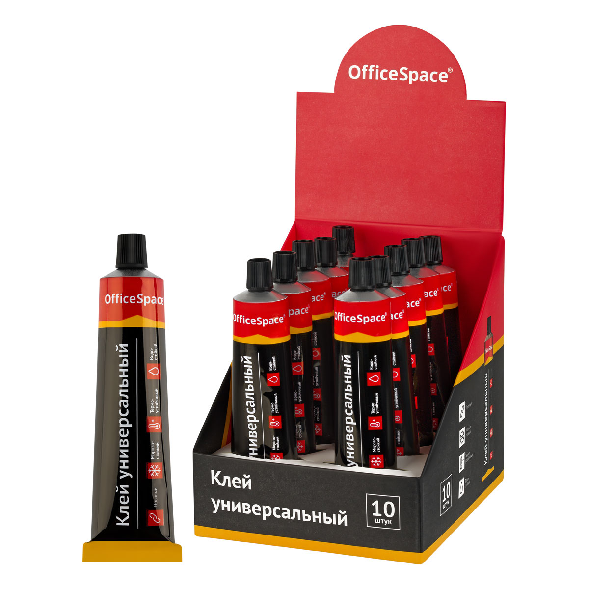 Клей универсальный OfficeSpace, 30мл (338170)описаниеУниверсальный клей OfficeSpace идеально подходит для склеивания материалов: резина, кожа, ткань, дерево, пластмасса, картон, ДСП, ДВП, фанера и др.