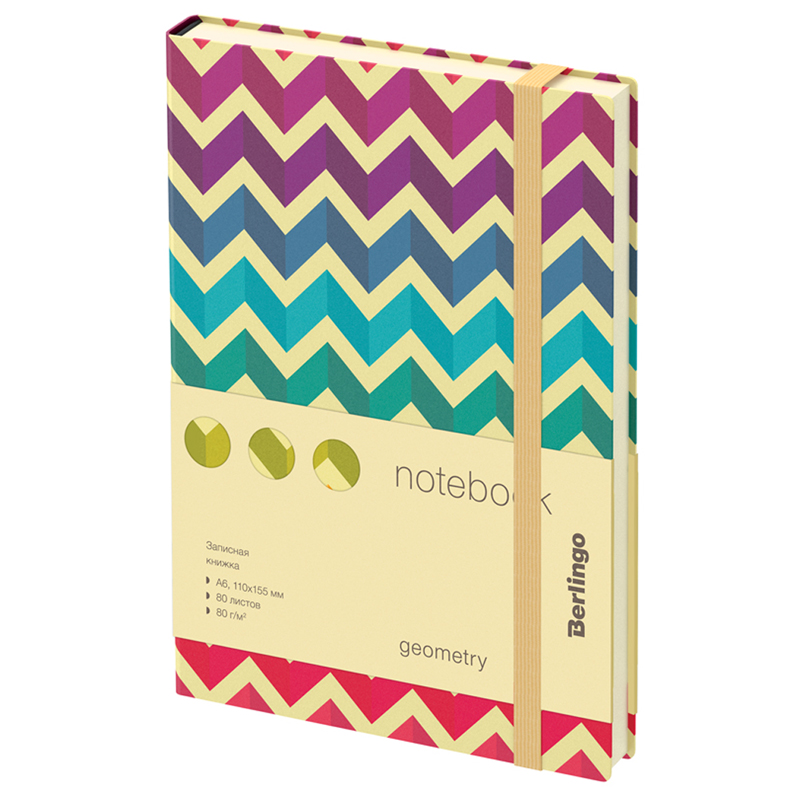 Компактная записная книжка Berlingo Geometry формата А6 с полужесткой обложкой и вертикальной фиксирующей резинкой идеально подойдет для срочных записей и ежедневного использования. Контрастные цвета красиво подчеркивают геометрический узор обложки. Прошитый внутренний блок из 80 листов кремовой бумаги повышенной плотности 80 г/м? имеет перфорированные уголки и линовку в клетку. Записная книжка Berlingo Geometry подходит под персонализацию и имеет 2 удобные закладки-ляссе. В подарок – 3 комплекта стикеров с латинским, русским алфавитом и пиктограммами. Записная книжка представлена в размере 110*155 мм. Купите товар «Записная книжка А6 80л., кожзам, Berlingo Geometry , с рисунком (NB0_92601)» по оптовой цене с доставкой или самовывозом.
