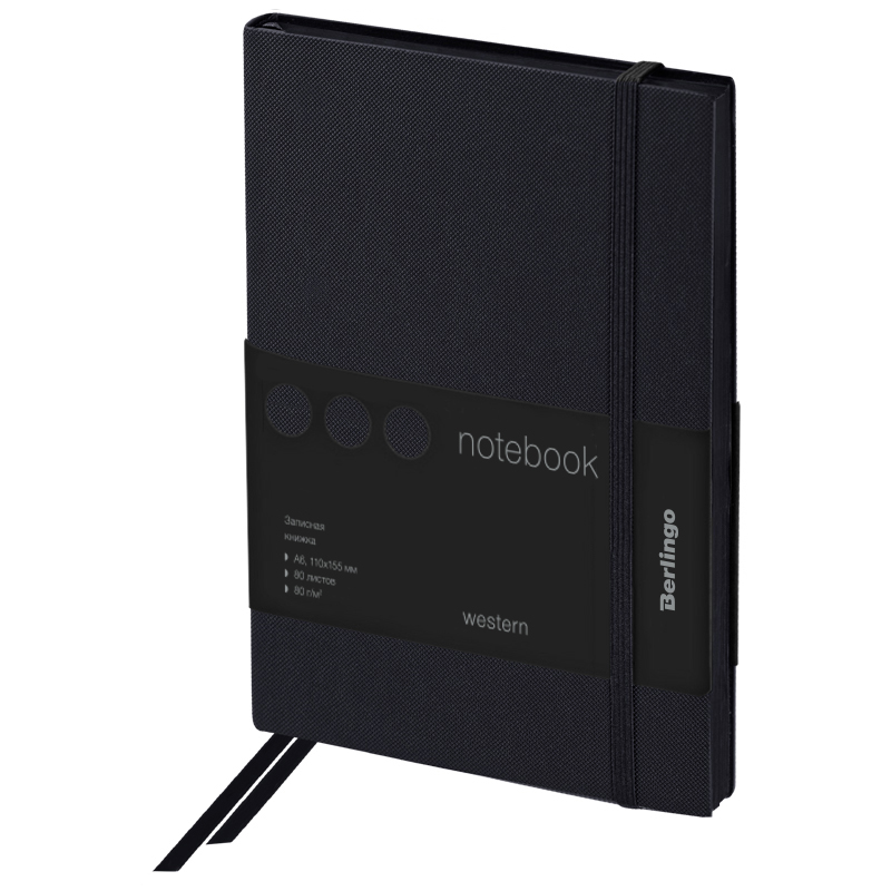 Компактная записная книжка Berlingo Western формата А6 с полужесткой обложкой и стильным тиснением под карбон – идеальный подарок для деловых людей. Чёрный строгий цвет обложки сочетается с чёрным срезом. Прошитый внутренний блок из 80 листов кремовой бумаги повышенной плотности 80 г/м? имеет перфорированные уголки и линовку в клетку. Записная книжка Berlingo Western подходит под персонализацию, внутри 2 удобные закладки-ляссе. В подарок – 3 комплекта стикеров с латинским, русским алфавитом и пиктограммами. Записная книжка представлена в размере 110*155 мм. Купите товар «Записная книжка А6 80л., кожзам, Berlingo Western , черный срез, с резинкой, черный (NB0_85601)» по оптовой цене с доставкой или самовывозом.