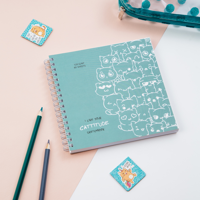 Скетчбуки Meshu оценят художники и любители творчества. Скетчбуки подойдут для рисования цветными и акварельными карандашами, а также любыми другими графическими материалами. Благодаря компактному формату его удобно брать с собой в путешествия, на прогулку или пленэр. Обложка с отделкой Soft Touch является приятной на ощупь. Тип крепления гребень позволяет раскрывать скетчбук на 360 градусов. Перенесите на бумагу все желания, эмоции и слова. Купите товар «Скетчбук 60л., 150*150 MESHU Cat wave , на гребне, выб. лак, soft-touch, 120г/м2 (MS_44867)» по оптовой цене с доставкой или самовывозом.