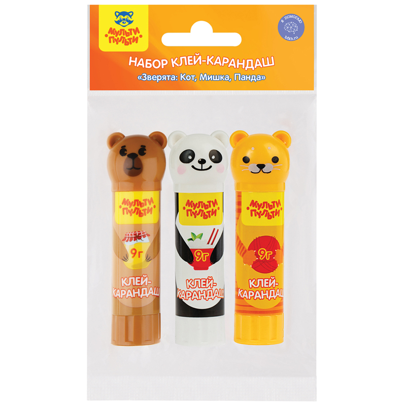 Набор клей-карандаш Мульти-Пульти Зверята: Кот, Мишка, Панда , 09г, колпачок в форме животного, ПВП, пакет, европодвес (GS_41909)описаниеКлей-карандаш «Мульти-Пульти» серии «Зверята: Кот, Мишка, Панда» с колпачком в форме животных – незаменимый помощник на уроках труда и занятиях творчеством. В набор входит 3 клея-карандаша по 9 граммов. Улучшенная формула на основе ПВП позволяет хорошо склеивать изделия из бумаги, картона, ткани. Клей быстро сохнет, нейтрален по запаху, легко смывается водой, не токсичен. Состав не содержит растворителей. Экономичный расход позволяет заниматься творчеством каждый день. Колпачки в форме зверей по ... [Подробнее на странице товара]Сумма заказа всех товаров с этого склада должна быть не менее 3000 р. Доставка от 4 дней