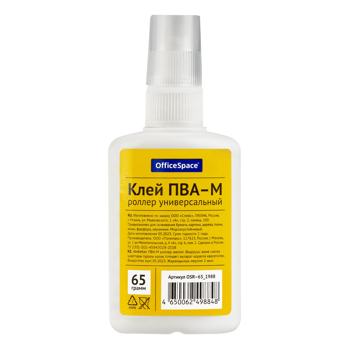 Клей-роллер ПВА OfficeSpace, 65г (OSR-65_1988)описаниеПредназначен для склеивания бумаги, картона, дерева, стекла, кожи, ткани, фарфору. Клей морозостойкий. Выдерживает 5 циклов заморозки/разморозки при температуре до -25°С. Клей с шариковым аппликатором обеспечивает аккуратное и экономичное склеивание. Подпружиненный шарик аппликатора не позволит клею пролиться из перевёрнутого флакона. Смывается водой. Сумма заказа всех товаров с этого склада должна быть не менее 3000 р. Доставка от 4 дней