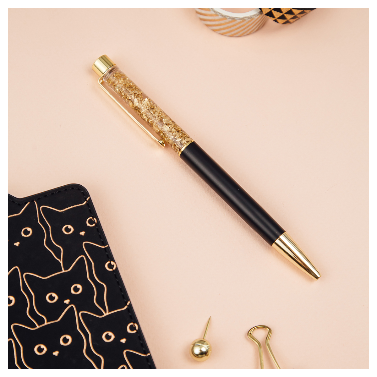 Шариковая ручка MESHU – это привлекательный аксессуар для ярких, смелых и успешных. Диаметр пишущего узла: 1 мм. Ручка подойдёт для мягкого и быстрого письма. Золотой корпус ручки из металла с черным матовым эффектом украшен вставкой с золотой поталью и дополнен металлическим клипом, с помощью которого ручку можно закрепить на одежде или ежедневнике.