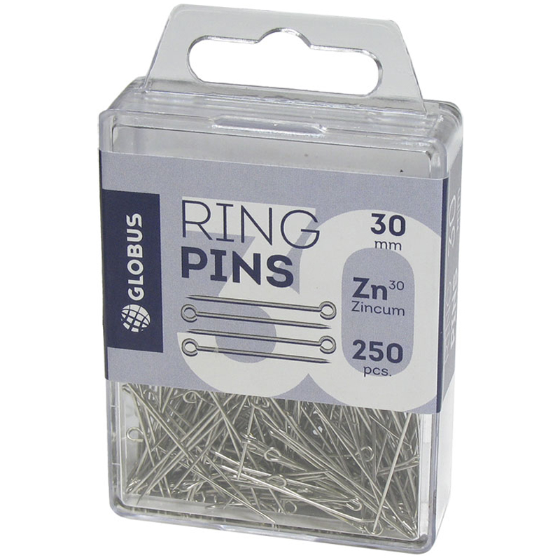 Булавки офисные Globus, 30мм, 250шт., пластик. коробка, европодвес (Б30-250)