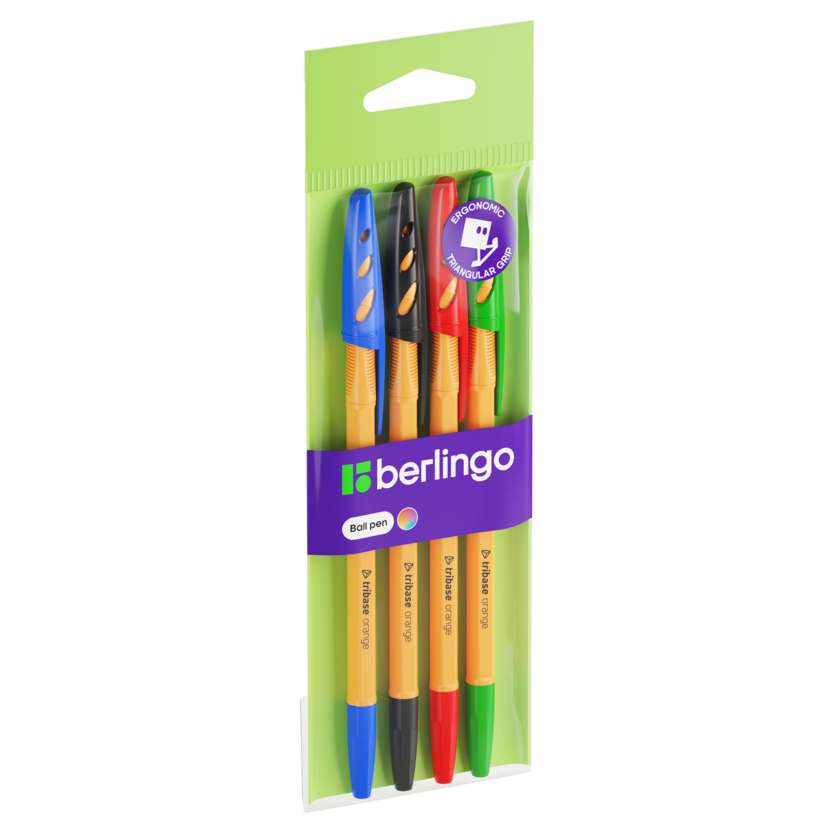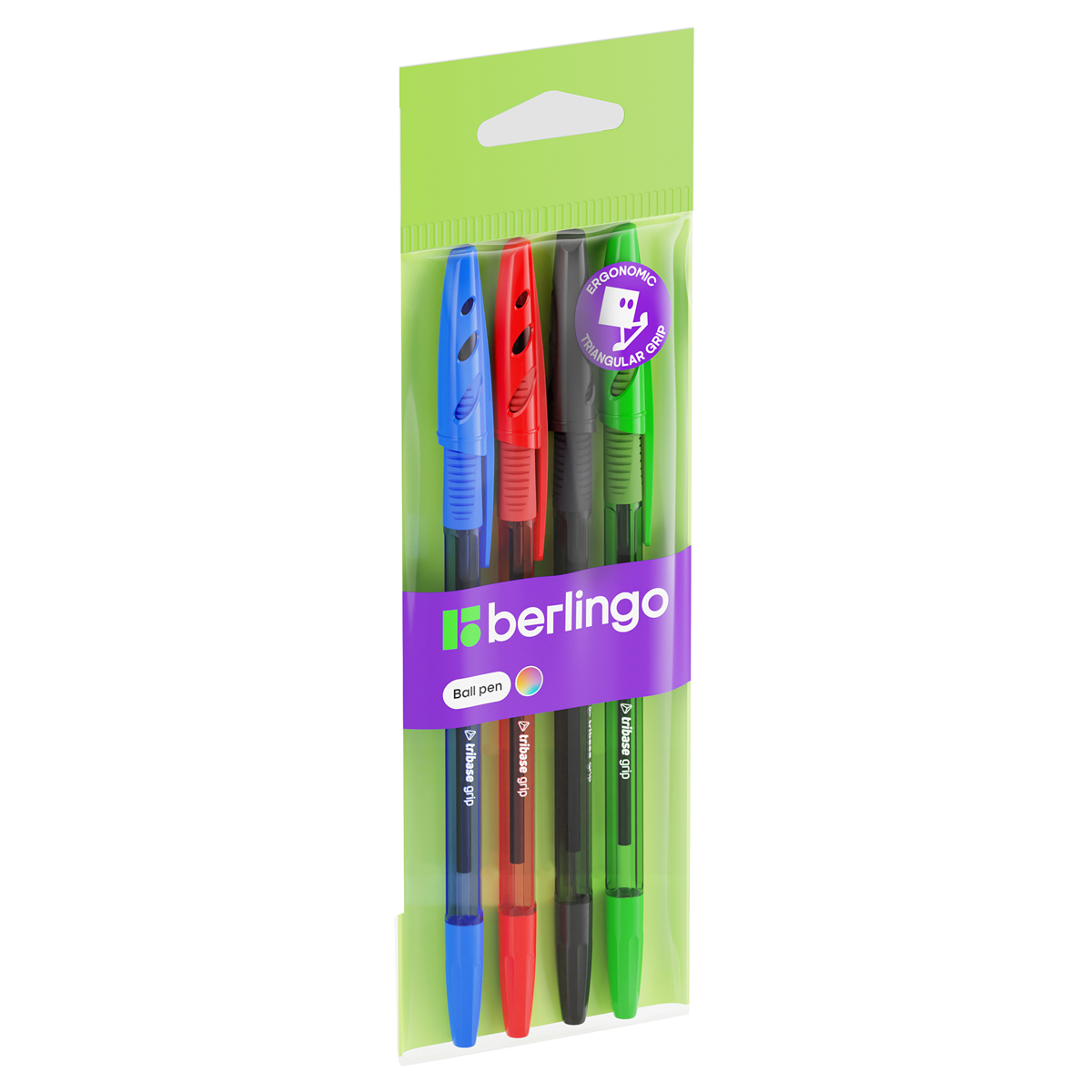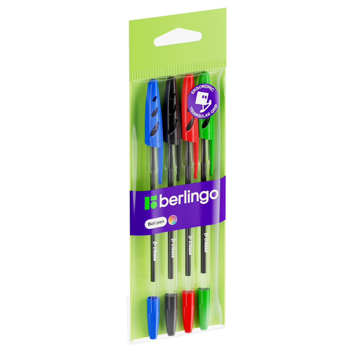 Набор шариковых ручек Berlingo  Tribase  4шт., 4цв., 1мм, европодвес (CBp_10104) - фото товара