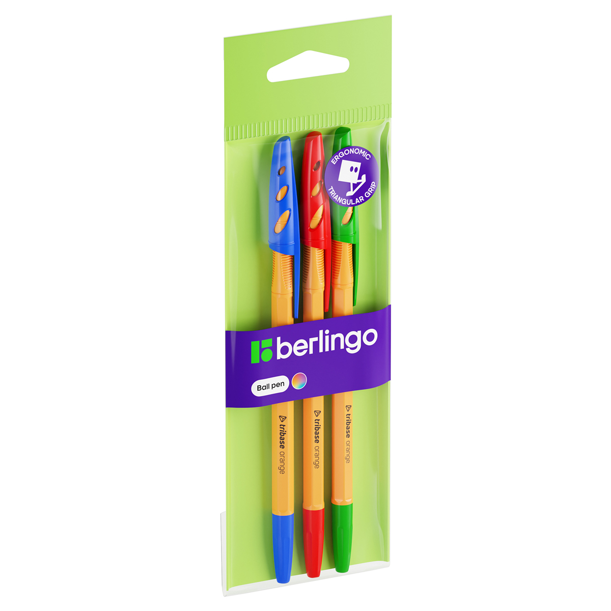 Набор шариковых ручек Berlingo  Tribase orange  3шт., 3цв., 0,7мм, европодвес (CBp_70103) - фото товара