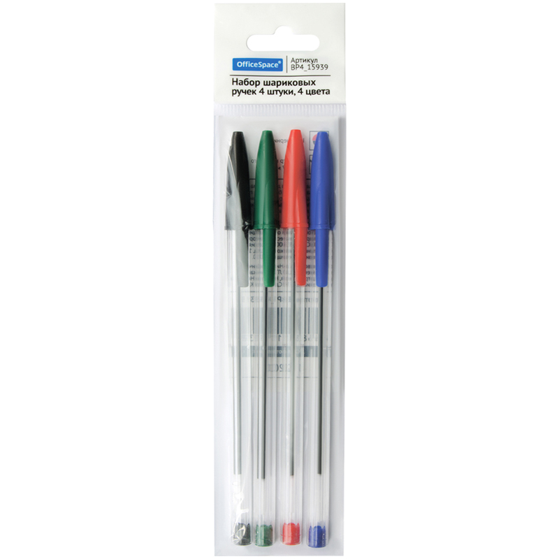 Набор шариковых ручек OfficeSpace 4шт., 04цв., 0,7мм, европодвес (BP4_15939) - фото товара