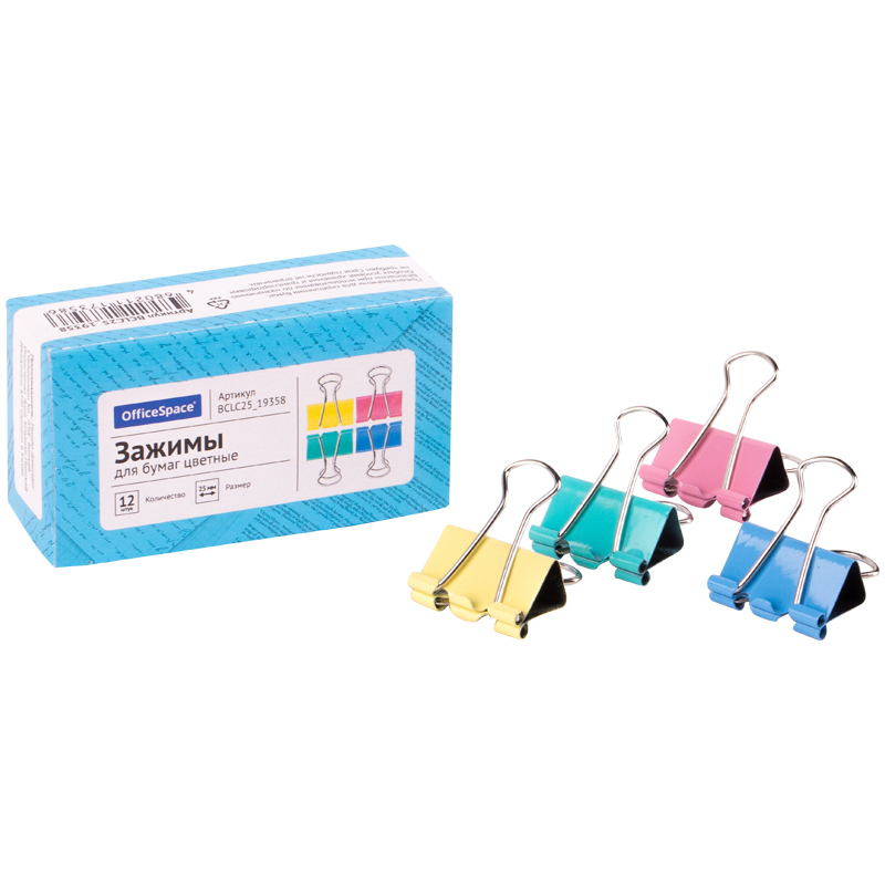 Для скрепления большого количества листов. Не деформируют бумагу. Цвет ассорти. 12 штук в коробочке. Купите товар «Зажимы для бумаг 25мм, OfficeSpace, 12шт., цветные, картонная коробка (BCLC25_19358)» по оптовой цене с доставкой или самовывозом.