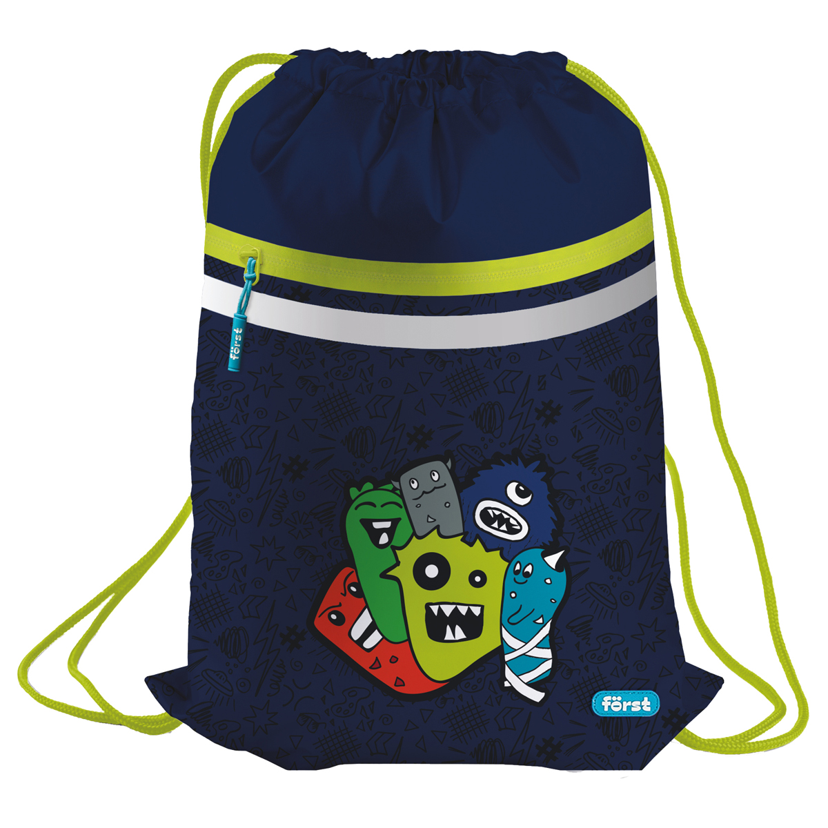 Удобный мешок для обуви F?rst Monsters с широкими шнурками, световозвращающей лентой, вентиляционной сеточкой сзади и вместительным передним карманом на молнии. Размер изделия 350*460 мм. Изготовлен из плотного высококачественного полиэстера, идеален как для зимней обуви, так и для спортивной экипировки. Индивидуальная упаковка.