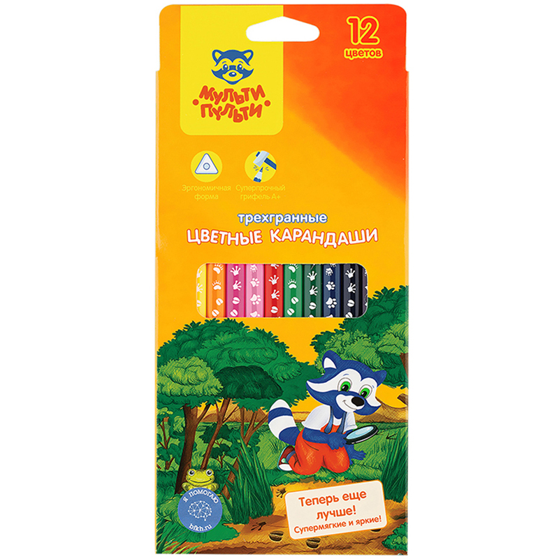 Главная страница → Карандаши цветные → Карандаши цветные → Творчество, хобби → Удалённый склад 2 → Карандаши цветные деревянные → Карандаши цветные Мульти-Пульти Енот-следопыт , 12цв., трехгр.,рисунок на корпусе, заточен., картон (CP_20537)