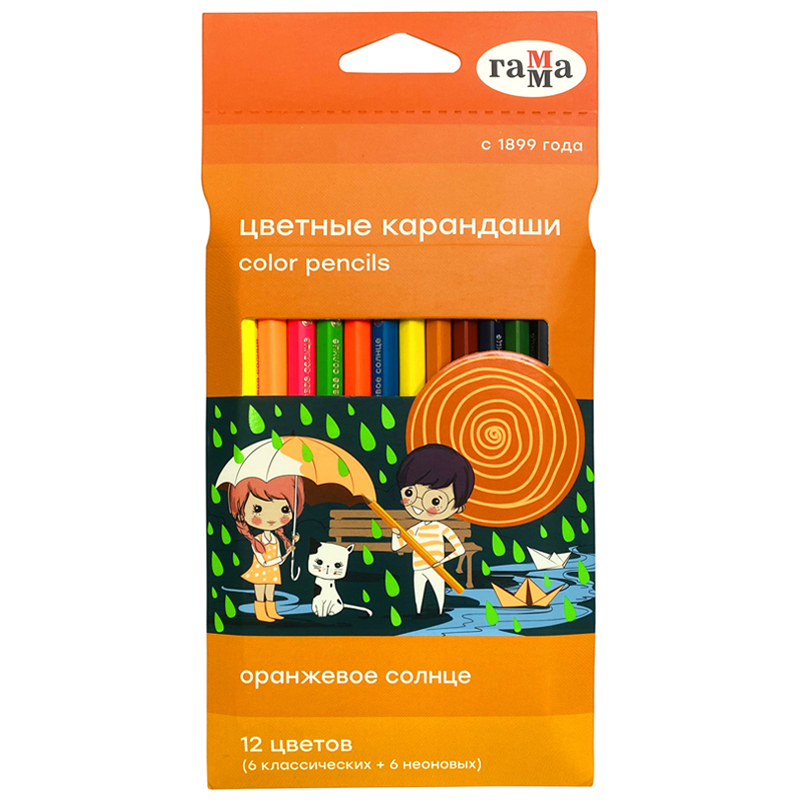 Цветные карандаши серии "Оранжевое солнце" в удобной упаковке-конверте имеют расширенную палитру цветов, включающую классические цвета и цвета с различными эффектами. В наборе: 6 классических и 6 неоновых цветов. «Волшебные» цвета дают возможность проявить фантазию и создать любой сказочный сюжет. Шестигранный корпус из мягкой натуральной древесины легко точить. Проклеенный ударопрочный грифель не крошится во время рисования и не ломается даже после падения. За яркость и высокую укрывистость отвечают качественные пигменты в составе. Ребенку не придется сильно давить на карандаш — рисунок получится ярким и равномерно закрашенным. Купите товар «Карандаши цветные Гамма Оранжевое солнце , 12цв. (6 классич. + 6 неон.), заточен., картон, европодвес (80220230)» по оптовой цене с доставкой или самовывозом.