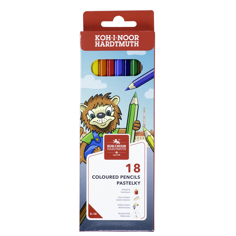 Карандаши цветные Koh-I-Noor Lion , 18цв., заточен., картон, европодвес (3553018034KS)