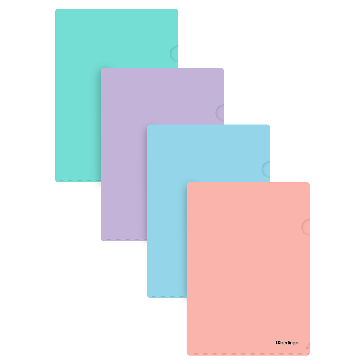 Папка-уголок пластиковая Berlingo Instinct формата А4 повышенной прочности, с увеличенной до 330 мкм толщиной для максимально надежного хранения и транспортировки документов. Изготовлена из высококачественного полипропилена с матовой текстурой поверхности, на которой не видно отпечатков пальцев и мелких царапин. Ассорти из 4 насыщенных пастельных цветов: аквамарин, лаванда, мятный, фламинго. Лазерная сварка швов. Специальная вырубка для быстрого доступа к документам. Вмещает до 120 листов. Упаковка в прозрачный пакет по форме на 4 штуки. Индивидуальный штрих-код на каждой папке-уголке на съёмном стикере с информацией.