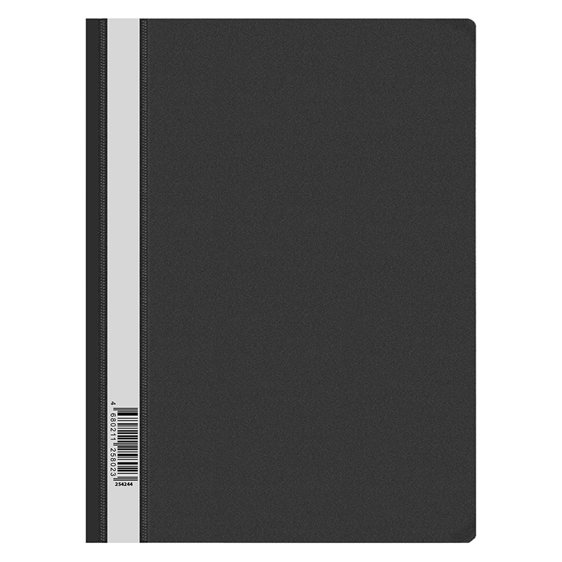 Папка-скоросшиватель OfficeSpace, формата А4, изготовлена из пластика толщиной 120мкм, черного цвета. Предназначена для хранения, транспортировки и систематизации документов формата А4. Защищает документы от пыли и влаги и прочих повреждений. Прозрачный верхний лист позволяет предварительно просматривать документы не открывая папку. Папка снабжена универсальной перфорацией. В ассортименте яркие офисные цвета. Купите товар «Папка-скоросшиватель пластик. OfficeSpace А4, 120мкм, черная с прозр. верхом (254244)» по оптовой цене с доставкой или самовывозом. Заказывайте, пока этот товар не раскупили! Товар производится под торговой маркой «Спейс», что говорит о высоком качестве продукции.