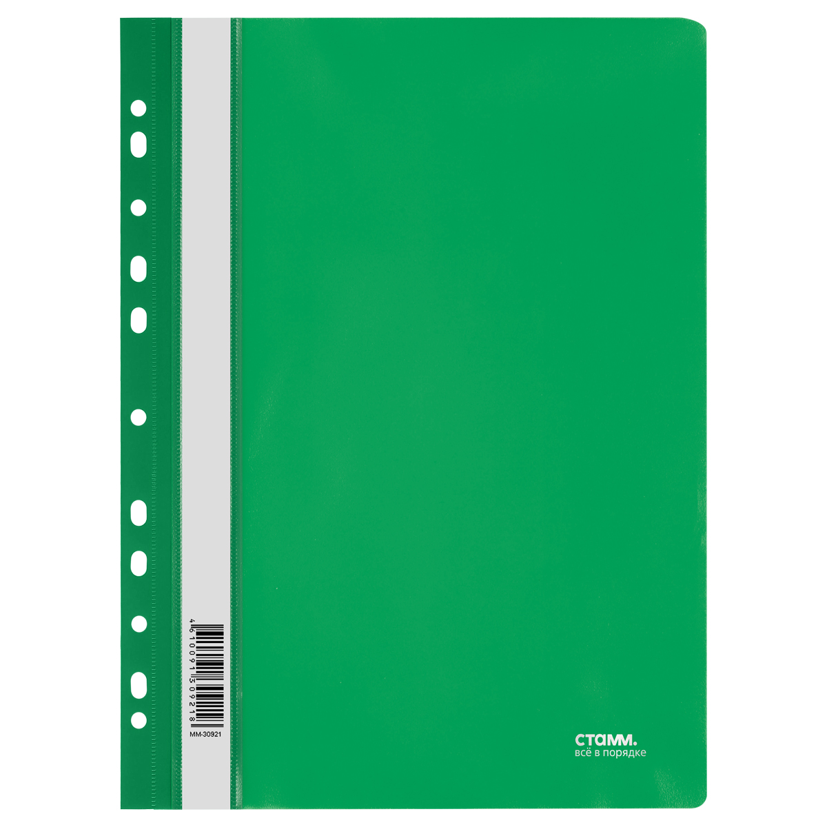 Папка-скоросшиватель пластик. перф. СТАММ А4, 180мкм, зеленая с прозр. верхом (ММ-30921)