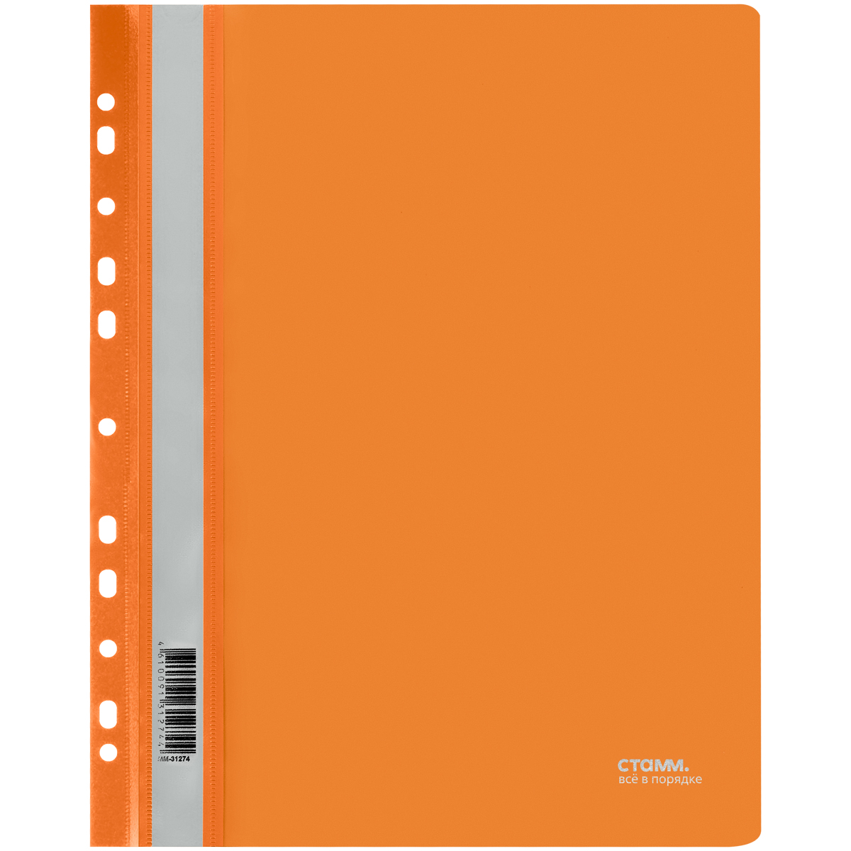 Папка-скоросшиватель «СТАММ» формата А4 предназначена для транспортировки, хранения и систематизации документов. Изделие изготовлено из качественного полипропилена толщиной 180 мкм. Изделие размером 240*310 мм имеет оранжевый цвет с прозрачным верхним листом и снабжено универсальной перфорацией. Вместимость – до 100 листов. Папка защищает документы от пыли, влаги и прочих повреждений.