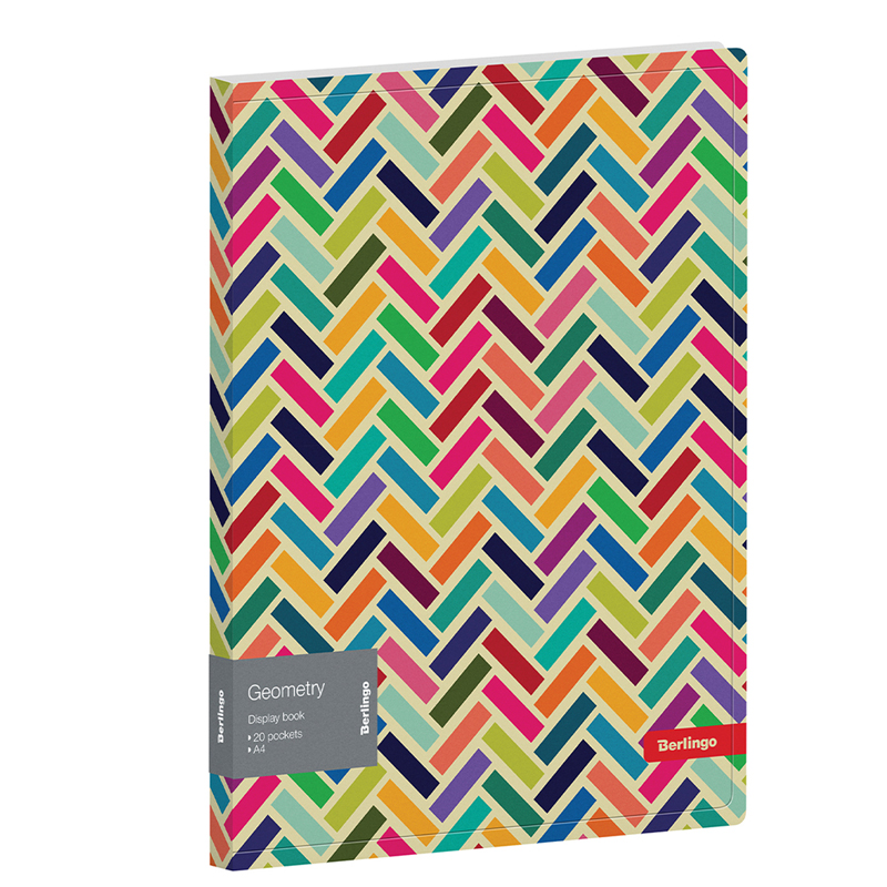 Папка Berlingo серии Geometry с 20 вкладышами формата А4 - отличный и стильный помощник для хранения документов с ярким геометричным рисунком на обложке. Толщина обложки - 600 мкм. Тип скрепления – термосварка. Ширина корешка - 17 мм. Папка изготовлена из высококачественного полипропилена с матовой текстурой поверхности "песок", на которой не видно отпечатков пальцев и мелких царапин. Внутренняя сторона обложки имеет белый цвет и оснащена плотным прозрачным карманом для удобного хранения мелочей: ручки, заметок, визиток, дисков, флешек и др. Папка выполнена в размере 310*233*17 мм. Папка имеет 20 прозрачных листов-карманов увеличенной толщины 30 мкм, надёжно скреплённых сваркой. Вмещает до 100 бумажных листов. Индивидуальная упаковка в прозрачный пакет.