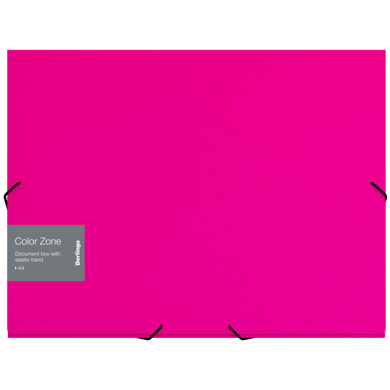 Папка-короб на резинке Berlingo формата А4 предназначена для хранения и транспортировки большого количества бумаг. Папка имеет надёжные угловые резинки и клапаны для защиты документов от повреждений. Папка-короб изготовлена из плотного фактурного пластика толщиной 1 мм. Яркие насыщенные цвета. Черный цвет внутренней поверхности. Индивидуальная упаковка в пакет. Купите товар «Папка-короб на резинке Berlingo Color Zone А4, 50мм, 1000мкм, розовая (DB50113)» по оптовой цене с доставкой или самовывозом.