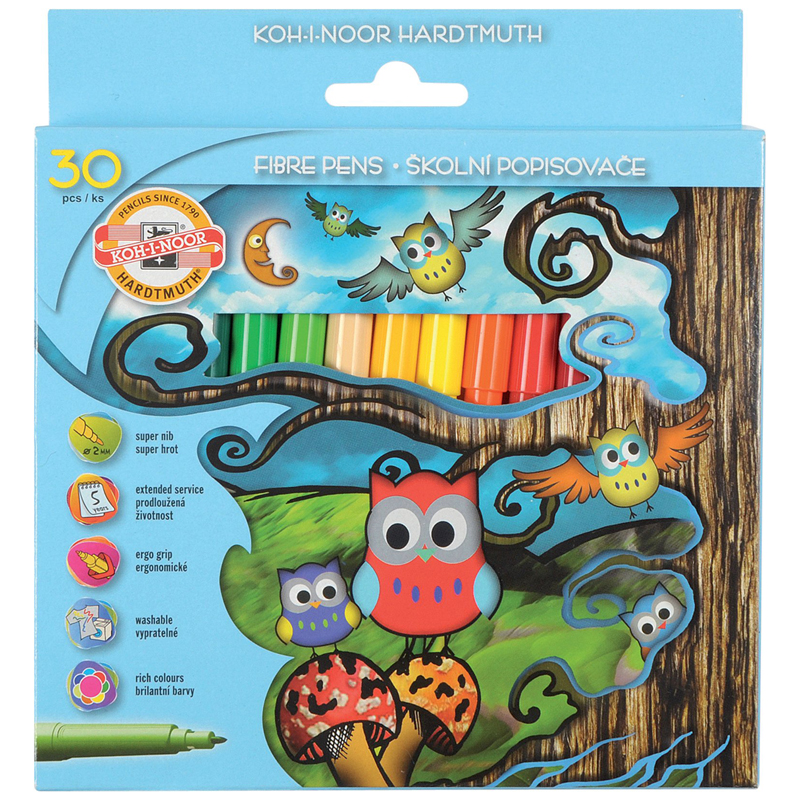 Яркие фломастеры на водной основе, смываются с рук и полностью отстирываются с одежды. Круглый корпус с треугольной зоной захвата, вентилируемый колпачок. Толщина линии при письме 1-2мм. Фломастеры имеют увеличенный срок годности – 5 лет. Купите товар «Фломастеры Koh-I-Noor Owls , 30цв., трехгранные, смываемые, картон, европодвес (771012CJ02KS)» по оптовой цене с доставкой или самовывозом.