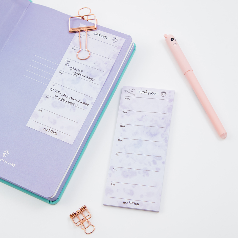 Самоклеящийся блок MESHU Color splash , 140*60мм, 50л., европодвес, Lilac week plan (MS_87750)