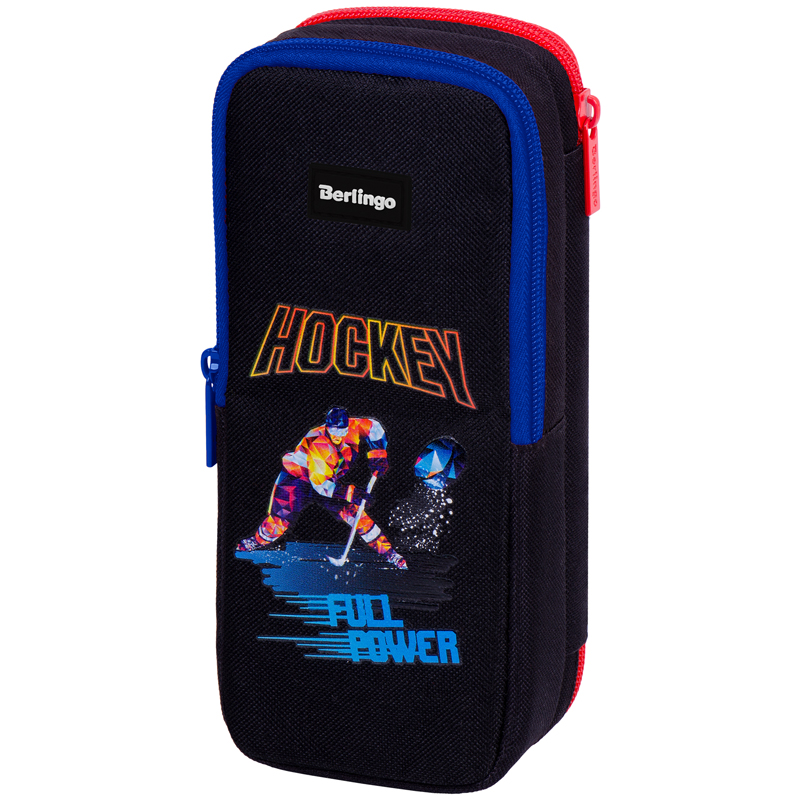 Пенал-футляр школьный мягкий Berlingo Full power размером 205*80*55 мм имеет два отделения. Материал лицевой и внутренней поверхности – полиэстер. На откидной части есть небольшой кармашек для точилки и ластика. В ней также спрятан магнит для удобства использования в открытом виде. Во втором отделении находится специальный органайзер для хранения канцтоваров. Поставляется без наполнения. Пенал чёрного цвета с синими и красными контрастными молниями, и ярким изображением хоккеиста обязательно понравится мальчикам. Индивидуальная упаковка в пакет.