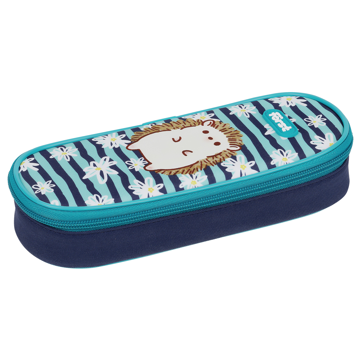 Пенал-футляр школьный корпусный F?rst Blue hedgehog имеет одно отделение. Материал лицевой поверхности и подкладки – полиэстер. На верхней откидной крышке расположены крепления-резиночки для канцелярских принадлежностей. Застежка – молния. Поставляется без наполнения.