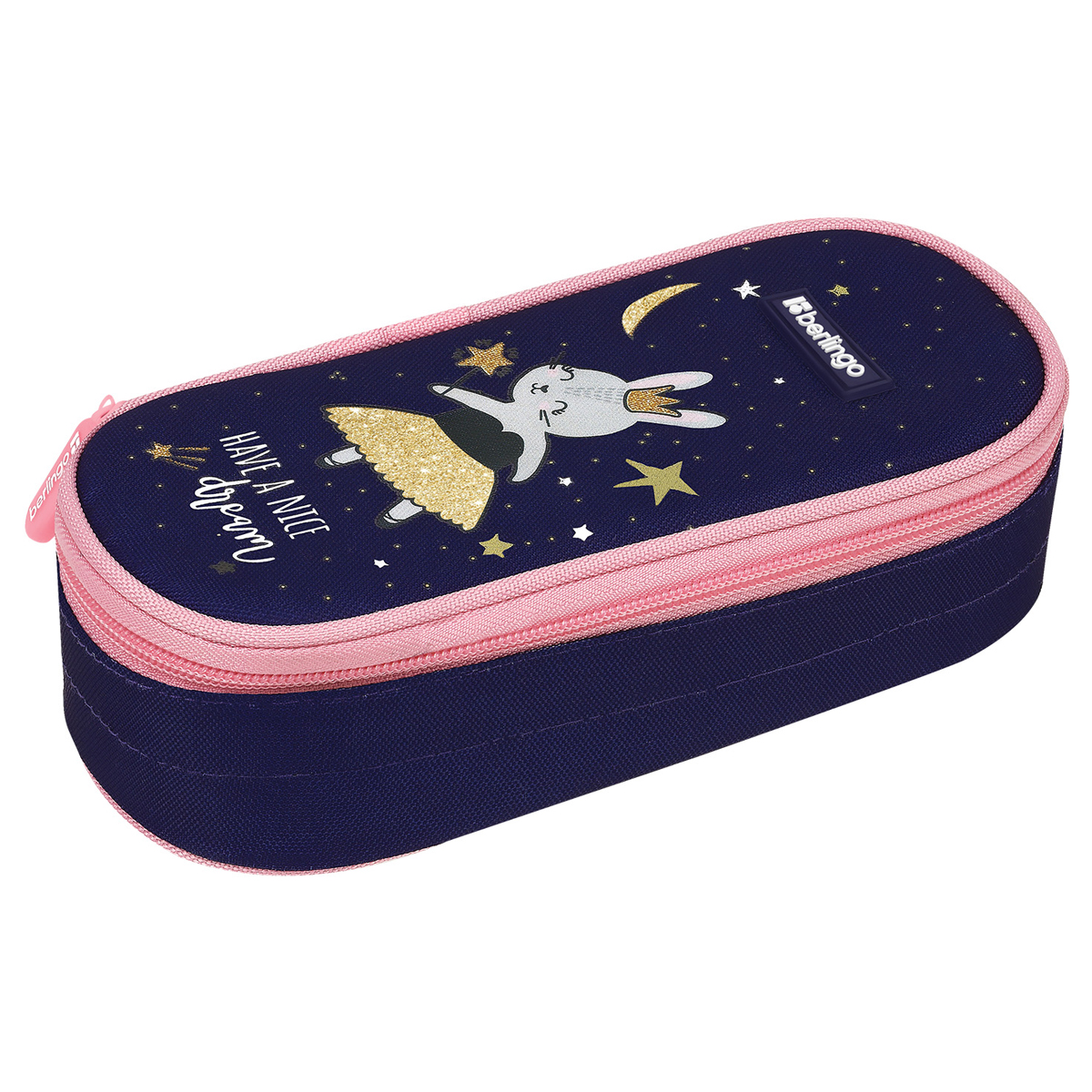 Пенал-футляр школьный корпусный Berlingo Bunny dream размером 195*85*50 мм имеет одно отделения. Материал лицевой поверхности и подкладки – полиэстер. На верхней откидной крышке расположены крепления-резиночки для канцелярских принадлежностей. Застежка – молния. Поставляется без наполнения. Индивидуальная упаковка в пакет.