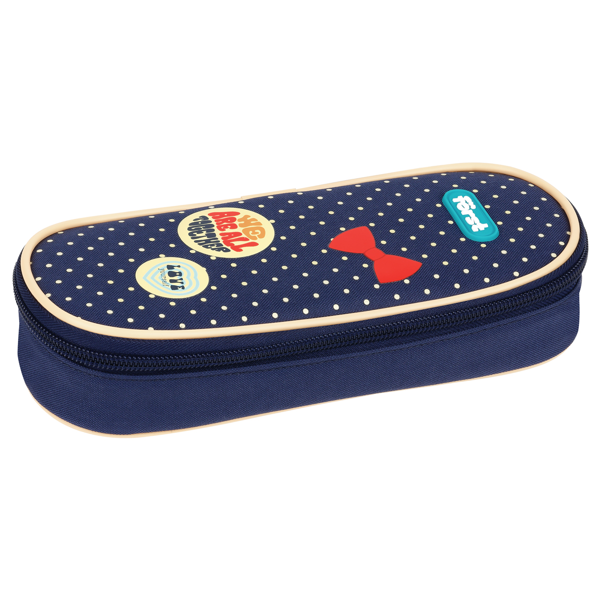 Корпусный пенал-футляр F?rst серии «Горошек» с одним отделением помогает школьнику хранить и переносить канцелярские принадлежности. Изделие размером 210*85*50 мм не занимает много места в рюкзаке. Материал лицевой поверхности и подкладки – износостойкий полиэстер.