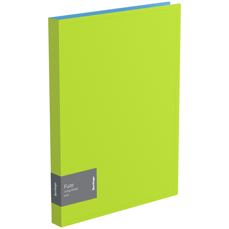 Папка на 4-х кольцах Berlingo Fuze , 25мм, 600мкм, салатовая (ABp_42319)описаниеПапка на 4-х кольцах Berlingo серия Fuze формата А4 станет идеальным помощником в учёбе и работе. Папка размером 305*250*25 мм изготовлена из плотного пластика салатового цвета снаружи и голубого цвета внутри толщиной 600 мкм с текстурой «песок» и предназначена для хранения перфорированных документов и документов, вложенных в перфофайлы. Ширина корешка 25 мм. Кольца в количестве четырёх штук на папке имеют диаметр 17 мм. Папка выполнена в ярких контрастных цветах концепции Fuze.