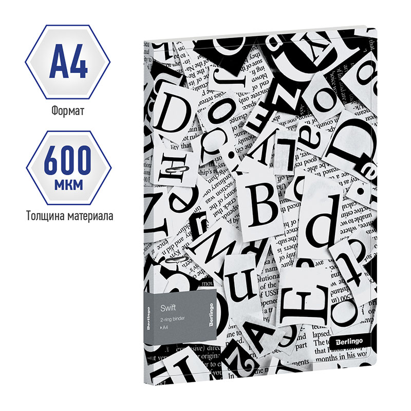 Папка пластиковая на 2 D-кольцах Berlingo "Swift" формата А4 с рисунком. Белый цвет внутренней поверхности. Специальная D форма колец помогает удобно и ровно хранить документы, которые могут быть выровнены по левому краю, благодаря боковой вертикальной стенке кольца. Диаметр колец 20мм. Специальные формовые отверстия в обложке служат для надежного защелкивания папки в сложенном виде, предотвращают случайное открытие обложки и замятие документов внутри при хранении и транспортировке. Изготовлена из высококачественного полипропилена с матовой текстурой поверхности "песок", на которой не видно отпечатков пальцев и мелких царапин. Предназначена для хранения документов. Толщина обложки 600мкм. На внутренней стороне обложки оснащена плотным прозрачным карманом для удобного хранения мелочей: ручки, заметок, визиток, дисков, флешек и др. Папка вмещает до 150 листов. Упакована в индивидуальный прозрачный пакет по форме. Купите товар «Папка на 2 кольцах Berlingo Swift , 24мм, 600мкм, с рисунком, D-кольца, с внутр. карманом (RB4_2D061)» по оптовой цене с доставкой или самовывозом.