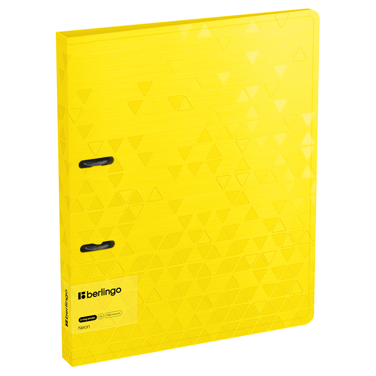Папка на 2 кольцах Berlingo серии Neon формата А4 (310*250*24 мм) изготовлена из плотного пластика толщиной 1 мм. Вместимость папки – 150 листов, ширина корешка – 24 мм. Кольцевой механизм с 2 кольцами диаметром 20 мм надежно держит перфорированные документы и документы, помещенные в файлы-вкладыши. Специальная D форма колец помогает удобно и ровно хранить документы, которые могут быть выровнены по левому краю, благодаря боковой вертикальной стенке кольца. Диаметр колец – 20 мм. Специальные формовые отверстия в обложке служат для надёжного защелкивания папки в сложенном виде, предотвращают случайное открытие обложки и замятие документов внутри при хранении и транспортировке. Изготовлена из высококачественного полипропилена с матовой текстурой поверхности «рельефные треугольники», на которой не видно отпечатков пальцев и мелких царапин. Предназначена для хранения документов. На внутренней стороне обложки оснащена плотным прозрачным карманом для удобного хранения мелочей: ручки, заметок, визиток, дисков, флешек и др. Упакована в индивидуальный прозрачный пакет по форме.